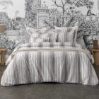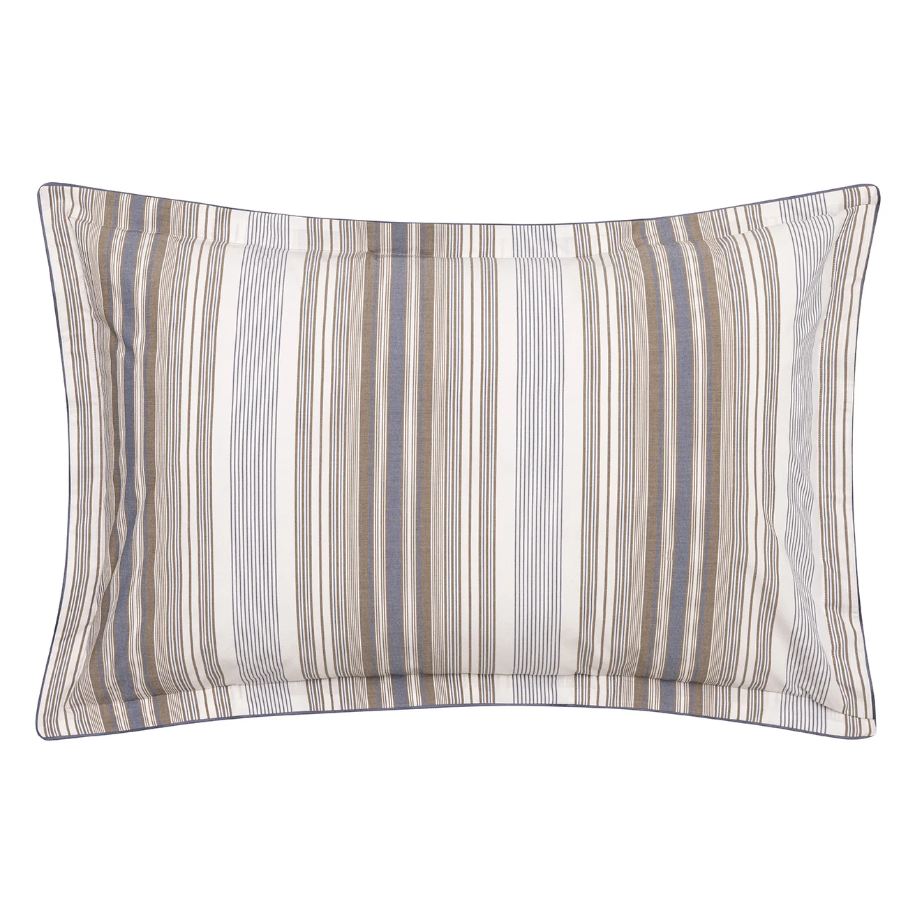 • De combinatie van zachte kleuren (bruin, blauw, wit) en verticale strepen geeft het bedlinnen een rustige, elegante uitstraling: chic maar niet te stijf.